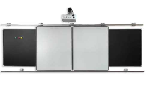 Ширина не подвижных сегментов – 1000 мм. Рельсовая система дает возможность мобильно управлять информацией на поверхности доски такая система удобна преподавателям, работающим с большим объемом информации на обычной школьной доске.